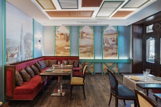 В ресторане уютное пространство с мягкими диванами и стульями. Красочный интерьер передает весь колорит Грузии: картины с изображением пейзажей, яркие ковры, подушки, мебель, глиняная посуда на полках, зелень в горшках. Для проведения торжественных мероприятий (до 40 гостей) вам предоставят специальные банкетные зоны. Здесь весело отмечают дни рождения, юбилеи, свадьбы, выпускные и корпоративы. Для удобства гостей имеется бесплатная парковка.