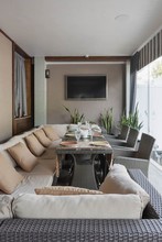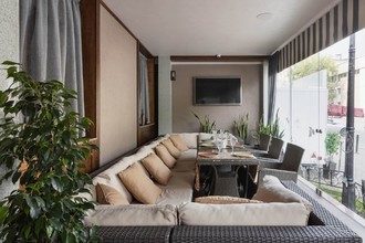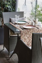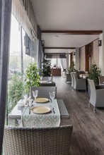 В теплое время года в ресторане действует летняя веранда с плетеной мебелью, поэтому вы сможете насладиться кавказскими угощениями на свежем воздухе.